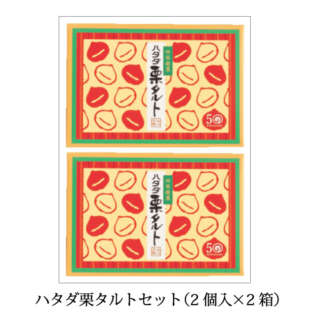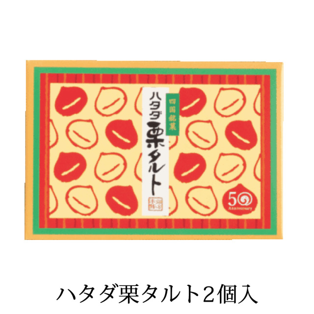 このたび、ハタダ栗タルト50周年を記念して、鮮やかな色味とどこか懐かしさを感じる、パッケージデザインで登場です!