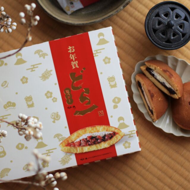 お正月の集まりに、仕事始めのご挨拶にぜひ新発売、数量限定のお年賀どら一をご利用ください。